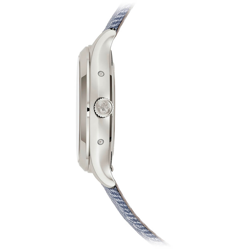 カーフスキン、デニム柄、ブルーグレー ホワイトゴールド・ピンバックル