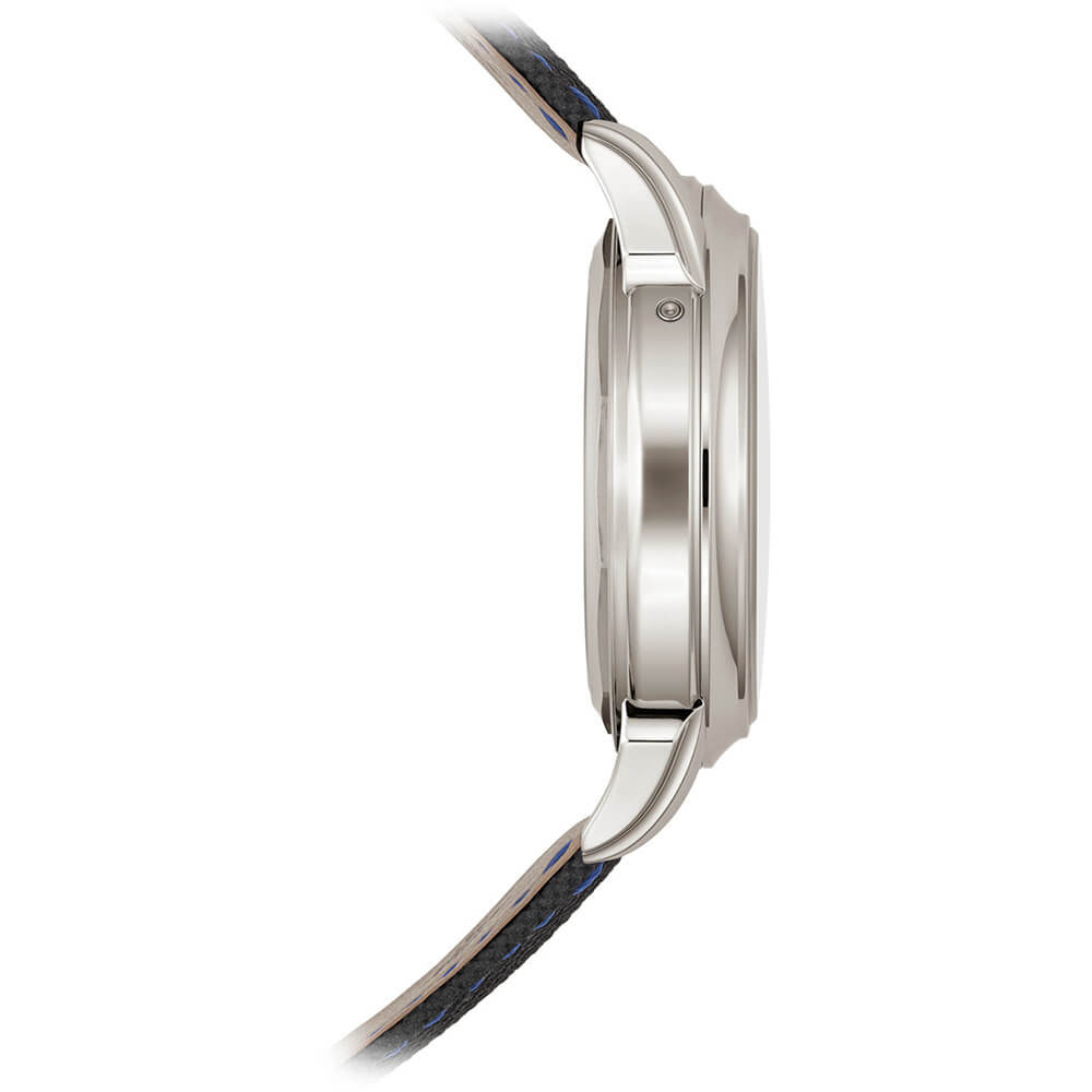 コンポジット素材、ファブリック柄、ブラック、ブルー・ステッチ プラチナ折り畳み式バックル