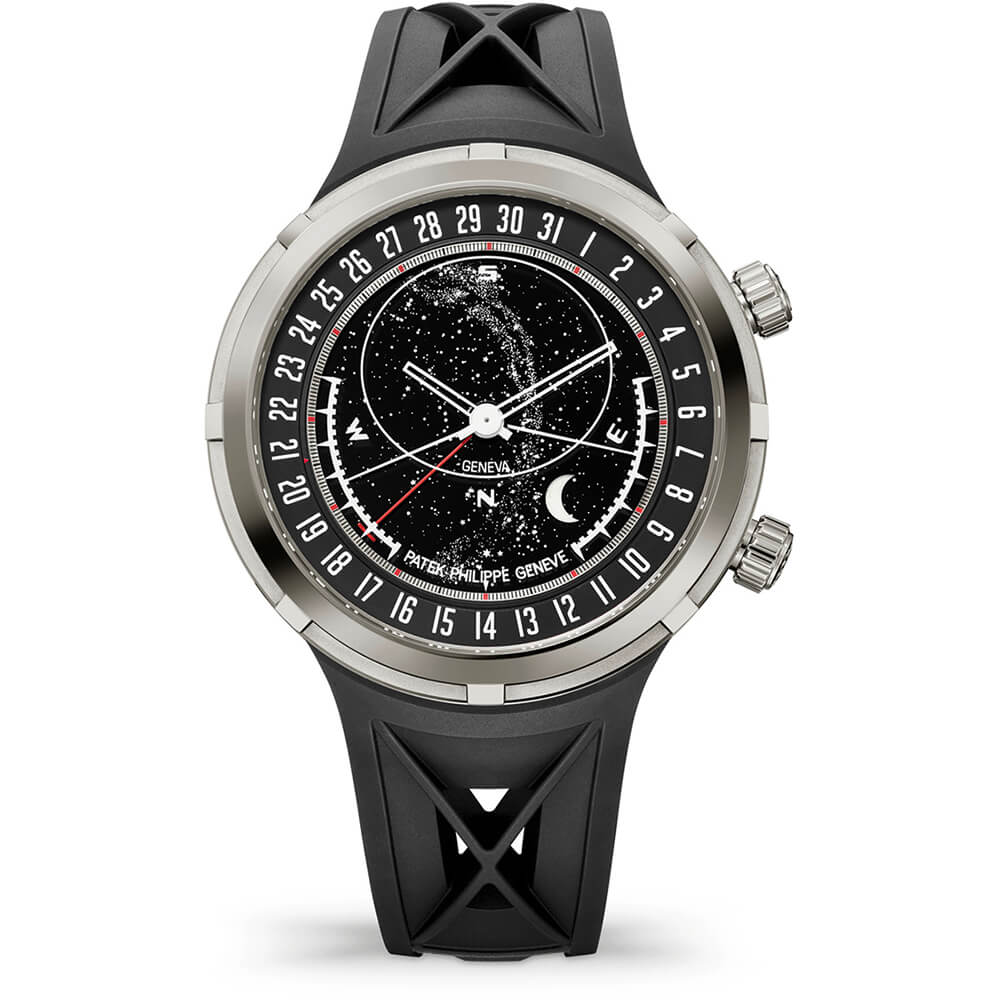 キャリバー 240 C LU CL LCSO セレスティアル、日昇・日没時刻表示、夏時間と冬時間の切り替え 平均太陽時(通常の時刻)による時・分表示、星座表 ジュネーブ、およびジュネーブと同じ緯度の他のすべての都市から見える天空部分を示す楕円形 子午線、シリウス星と月の子午線通過時刻、月の軌道、日付指針表示、ムーンフェイズ